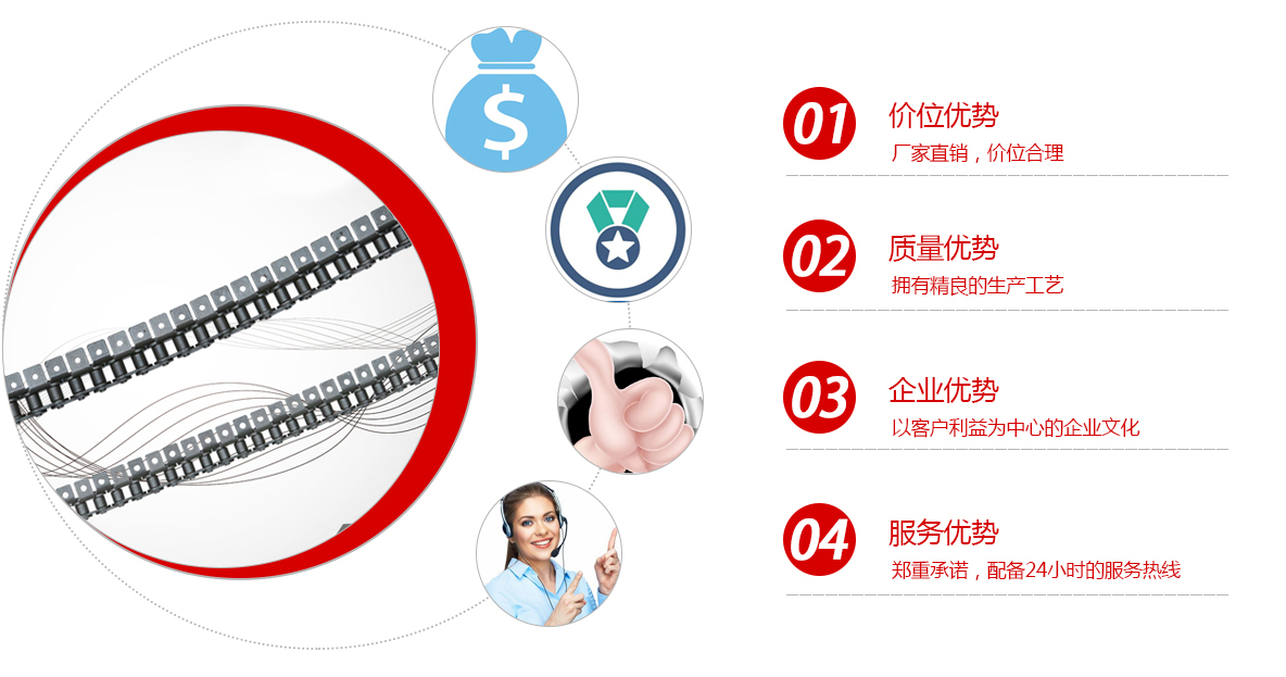 1、鏈條產品有各種不銹鋼、碳鋼輸送鏈條、雙節距輸送鏈條、空心銷軸鏈條、不銹鋼塑料平頂鏈、不銹鋼精密滾子鏈、特殊工礦輸送鏈、耐高溫輸送鏈條、非標鏈條、彎板非標鏈條、大節距輸送鏈條、各種鏈條用滾子(材質碳鋼、不銹鋼)等。